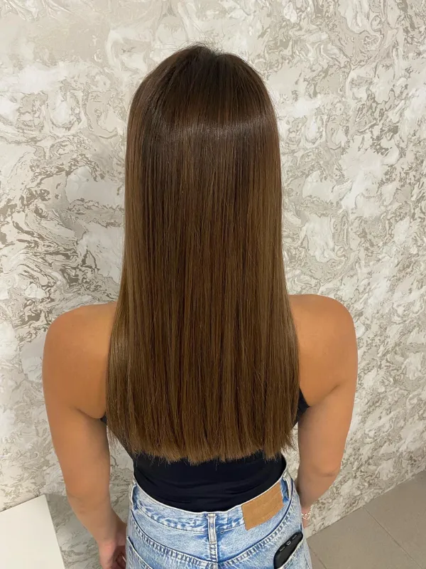 A kezelés utolsó lépése a 230 fokos hajvasalás, amely lezárja a hajszálak szerkezetét.